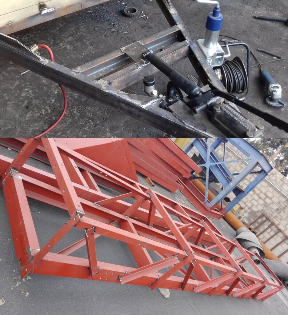 Presenting a small selection of our projects, ranging from high-voltage support structures to custom roof racks and trailer repairs. Our specialization lies in metalwork; regardless of the application or function, we possess the experience to create a solution for any problem you may face, or the idea you want to bring to life.